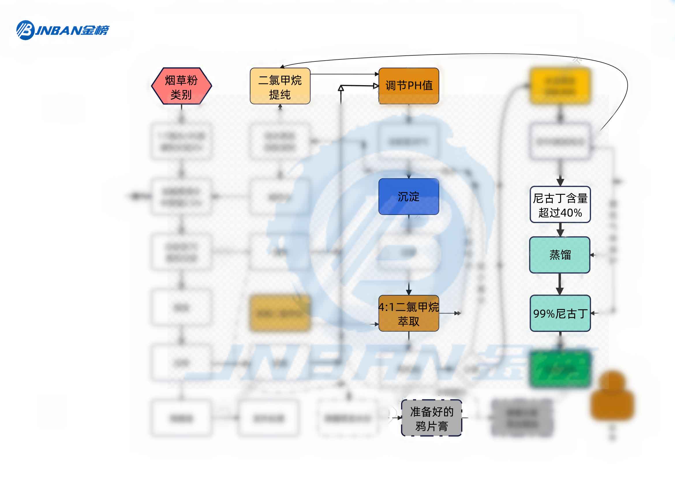 我們擁有完善的尼古丁提取生產(chǎn)線(xiàn)。日處理煙葉100KG-100T,提取率高,尼古丁純度高