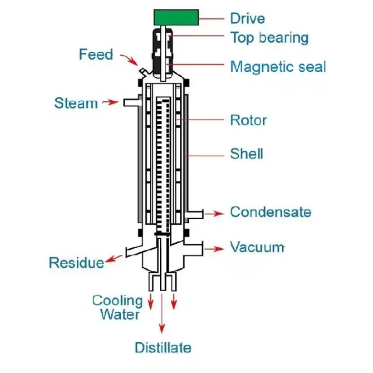 3、蒸餾液膜薄,傳熱效率高。