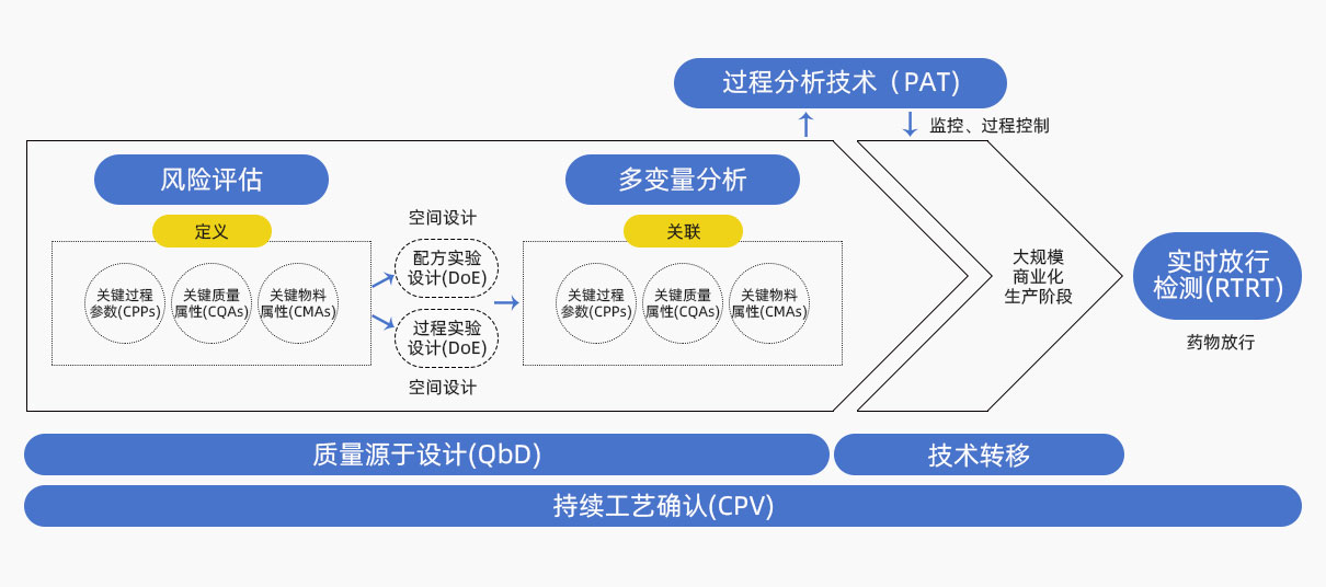 2004年,美國食品藥品監督管理局(FDA)發布《21世紀藥品生產質量管理規范——基于風險的方法》,正式啟動過程分析技術(PAT)倡議,其核心是通過實時監測、數據分析和反饋控制,實現“質量源于設計”(QbD)的理念,旨在通過工藝開發、生產與質量保障體系的創新,降低藥品制造中的公共衛生風險。
