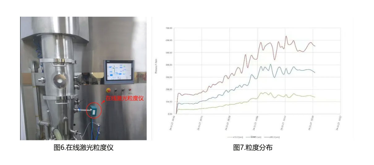 在線激光粒度儀(圖6)能夠實時監測流化床中顆粒的粒度分布,獲得顆粒實時狀態(圖7)。