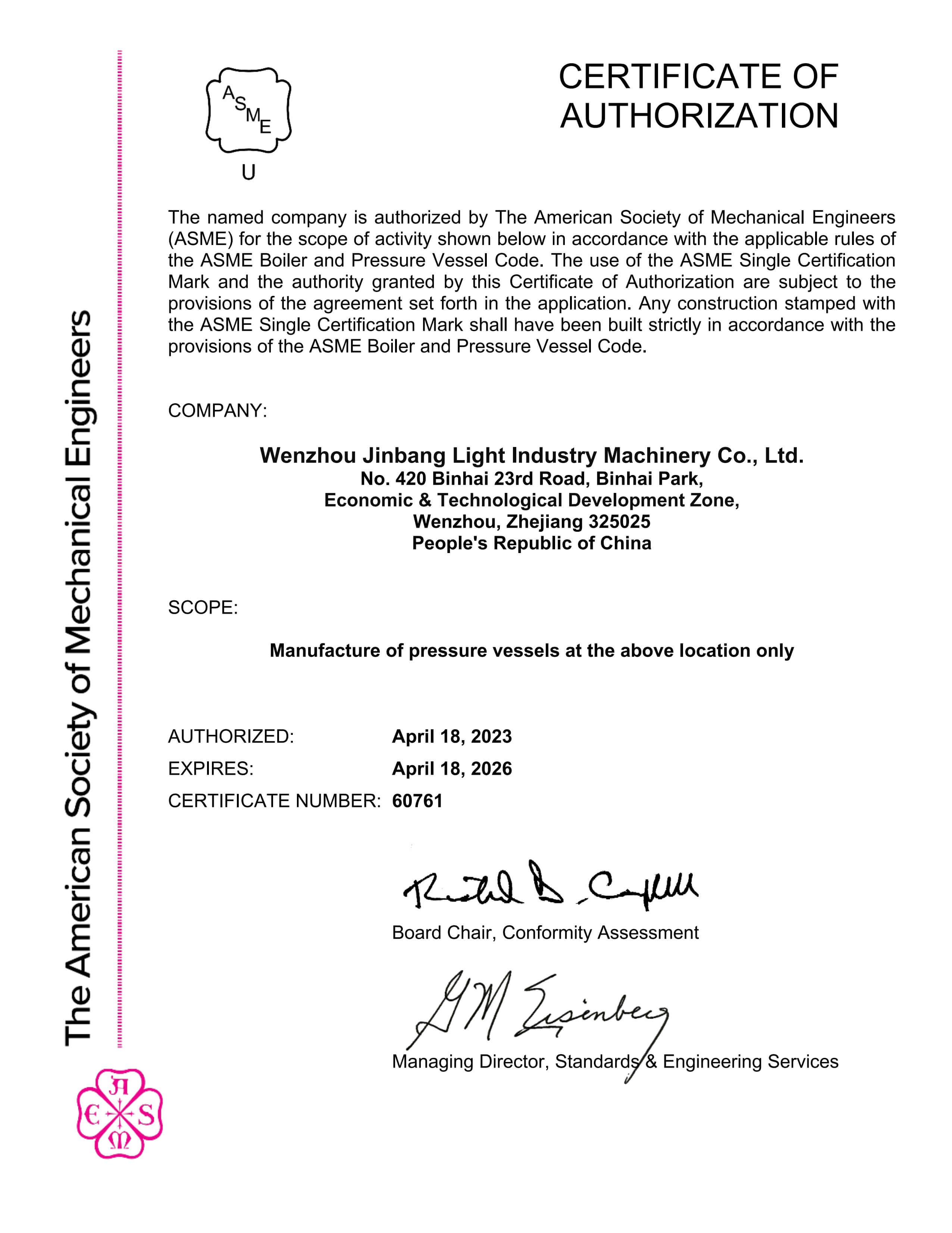 ASME壓力容器:也被稱為ASME鍋爐,是任何帶有ASME標志的壓力容器。ASME標志表明容器已經過檢驗并符合嚴格的ASME VIII規范標準。此外,ASME標志還向最終用戶提供有關ASME認證壓力容器及其制造商的信息。