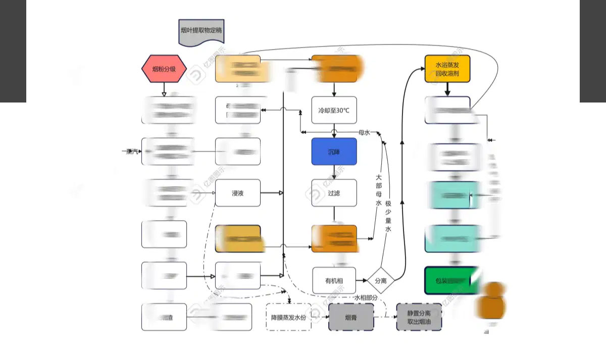 對于煙膏萃取,我們目前擁有自己的專利和技術。 提取系統、調配系統、醇沉系統、濃縮系統、過濾系統、公用工程系統、自動化系統、配方管理系統等構成了整條提取線的主體。